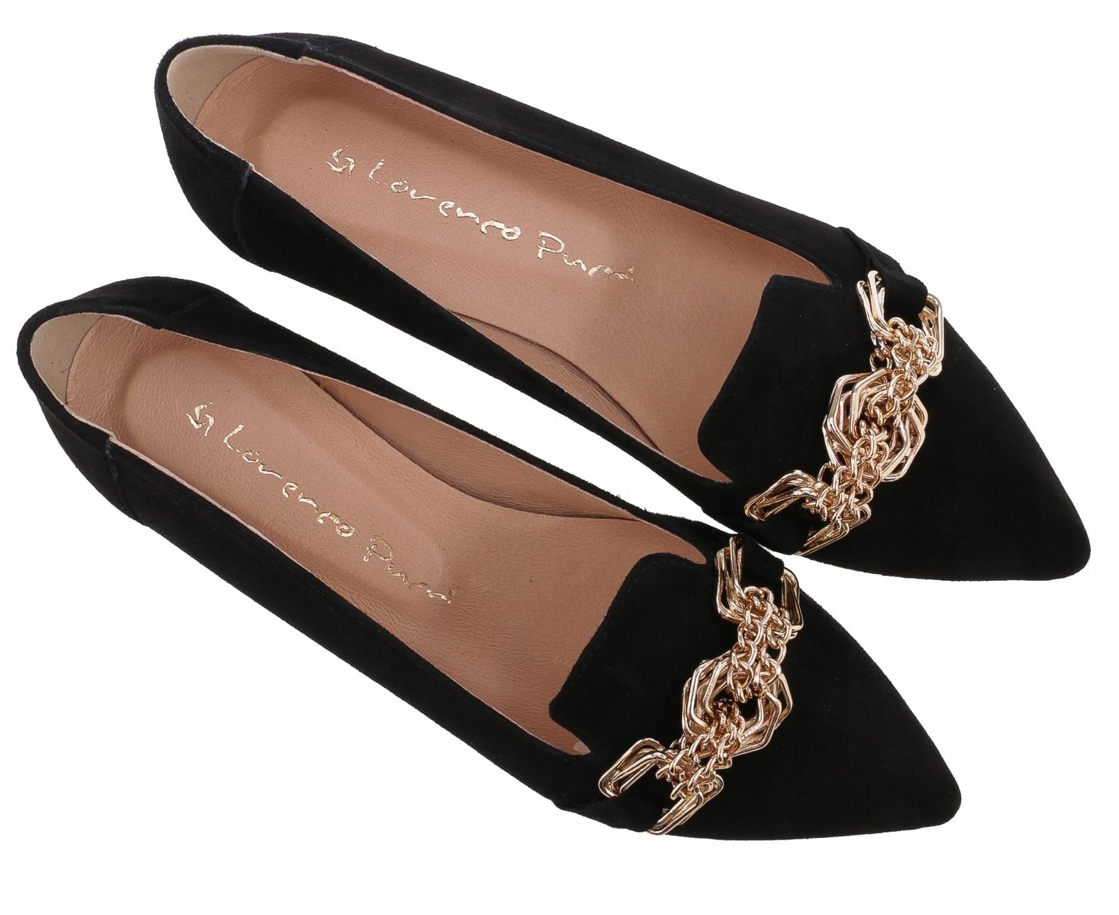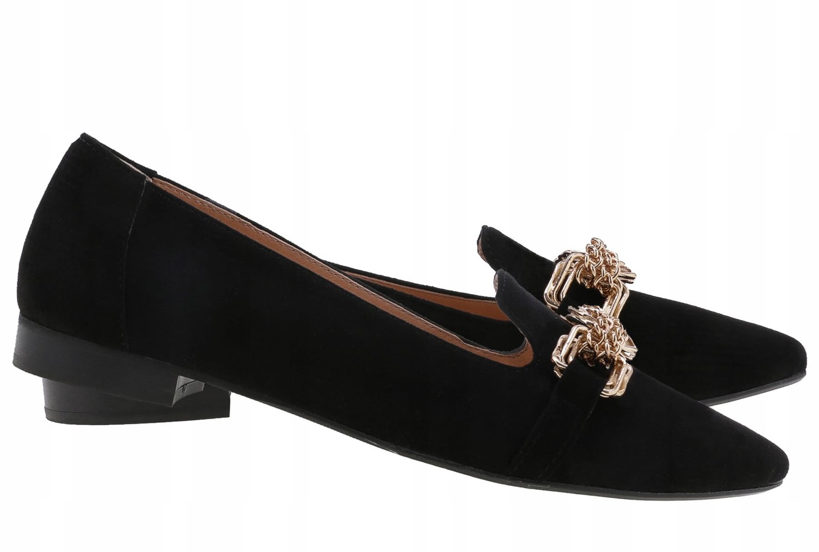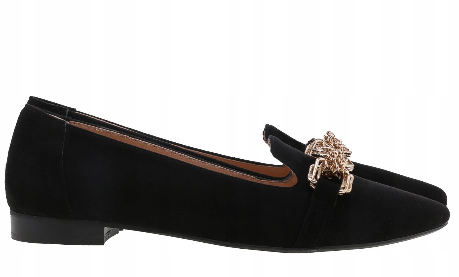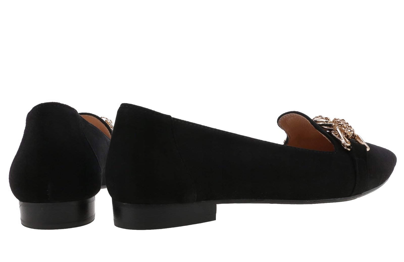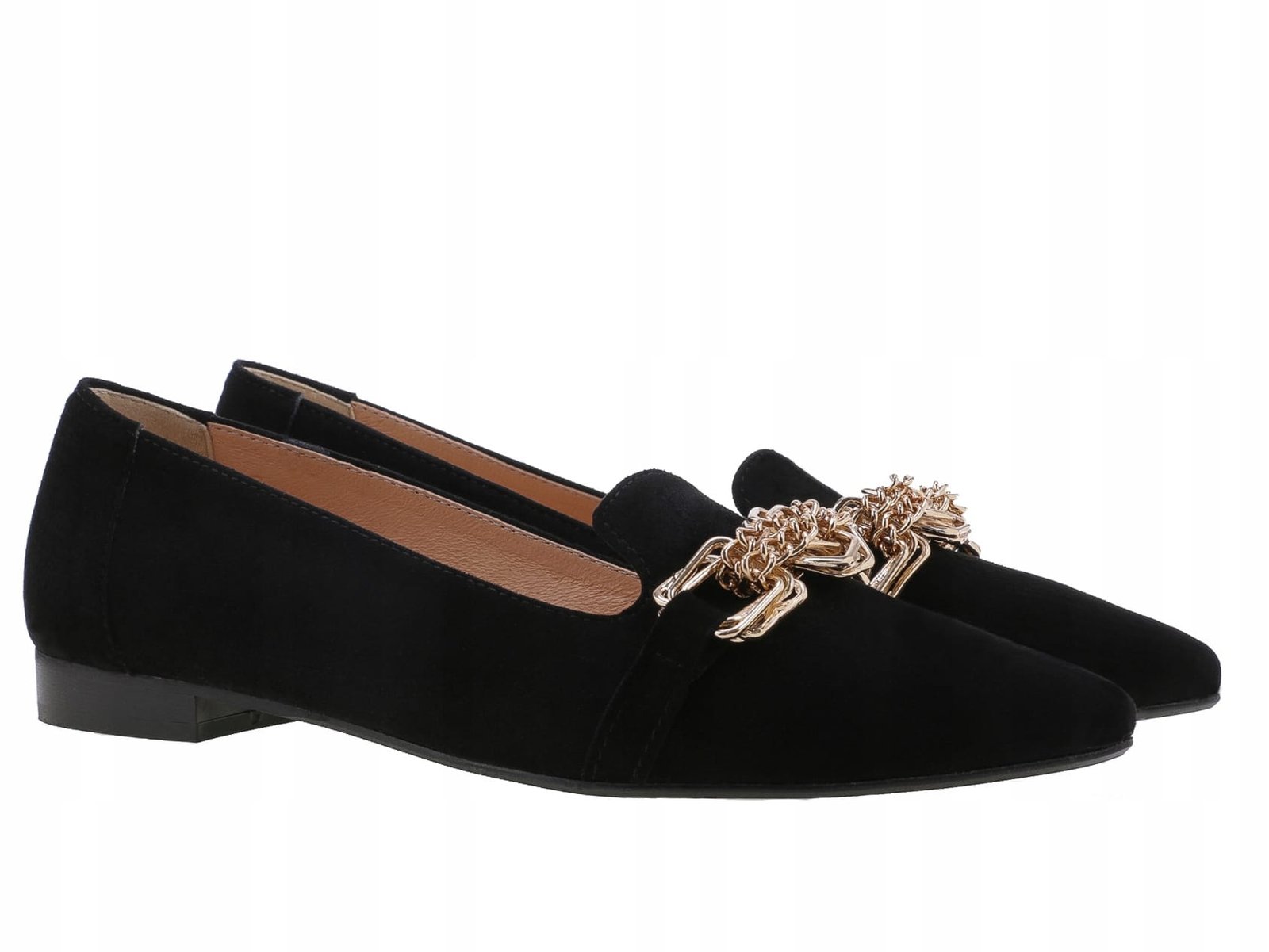 Balerinki wykonane z naturalnej skóry zamszowej w czarnym kolorze.