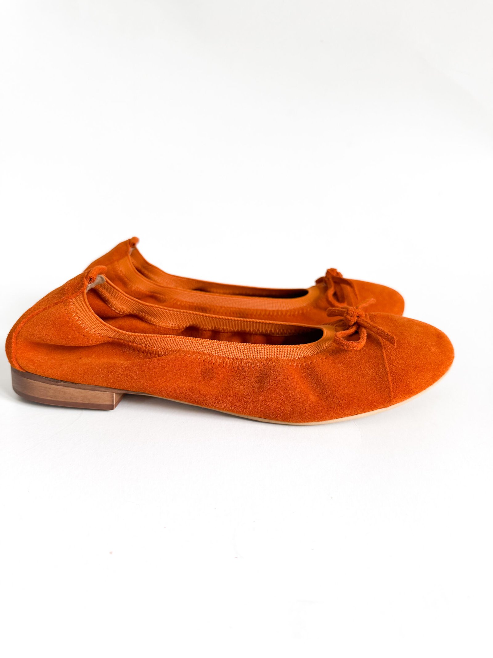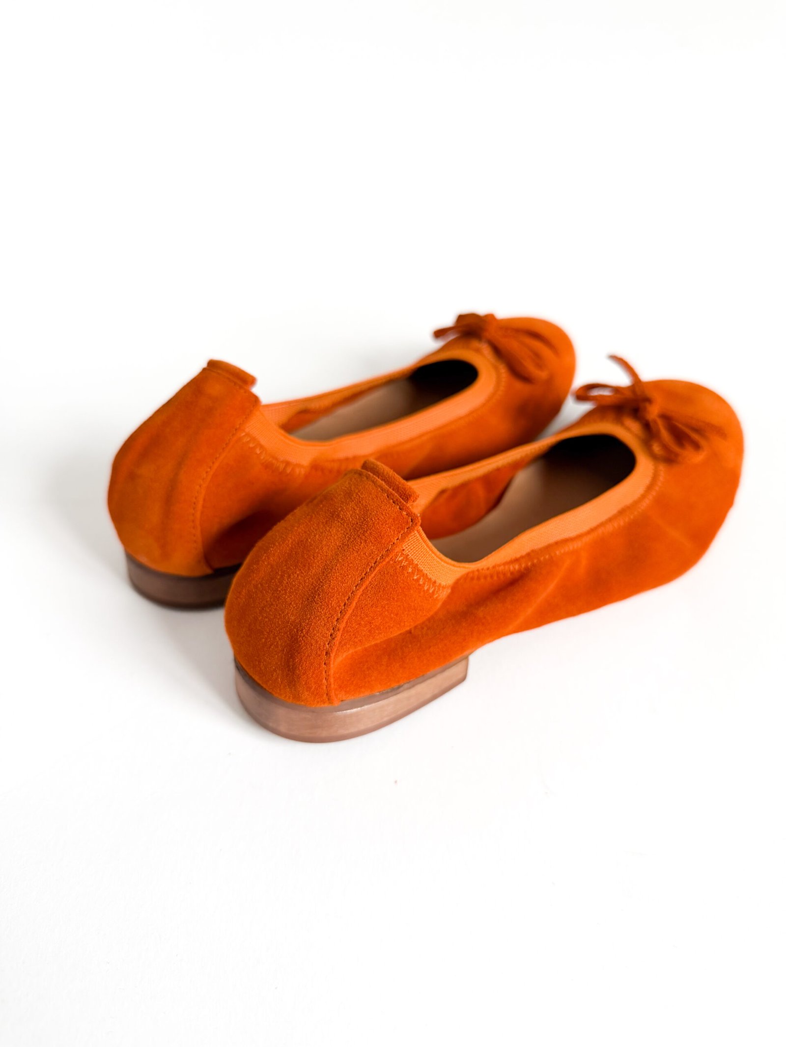 Pomarańczowe baleriny z naturalnej skóry zamszowej — styl i wygoda